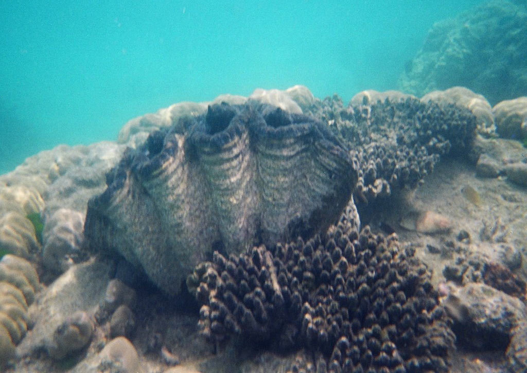 Once fertilised, the eggs of the giant clam float around in the water for around 12 hours when the larvae hatches out. The giant clam larvae than begins to produce a shell and with just a few days, is big enough to find somewhere to settle on the sea floor. Once a giant clam has found somewhere in the reef that it likes, it anchors itself onto the reef where it remains for the rest of its life. Giant clams are so successful within their environment that it is not uncommon for these giant molluscs to live for more than 100 years!